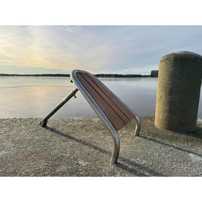 I paketet ingår fyra hylsor som monteras genom badbryggan. Vaggorna skruvas därefter enkelt fast i hylsorna, vilket gör att de kan tas bort när som helst utan att lämna fula hål. Kvar sitter enbart diskreta rostfria brickor som dessutom kan försänkas i teaken – inget som sticker upp och stör helhetsintrycket.