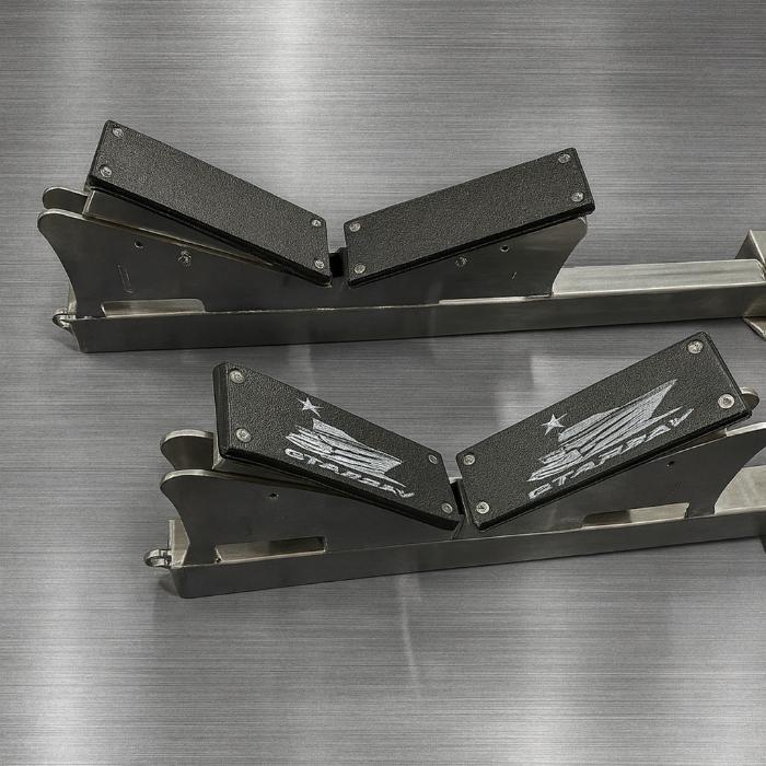 Dessa vaggor är det perfekta valet för dig som använder landgång eller kran för att lyfta ombord din jolle eller vattenskoter. Placera den direkt på vaggorna – de håller lasten stabilt och säkert under hela färden.