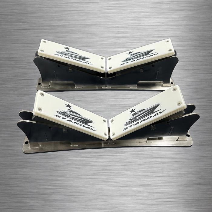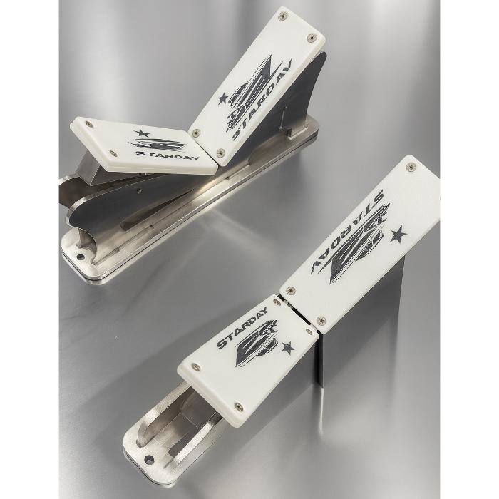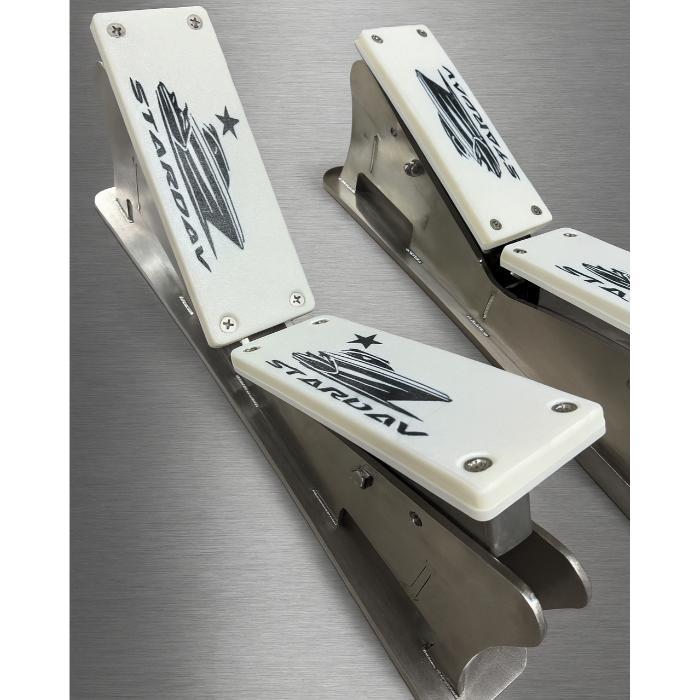 Vaggorna är självjusterande och tillverkade i rostfritt stål med anlägg i kolfiberförstärkt ASA-plast, vilket ger maximal styrka, hållbarhet och lång livslängd även i tuffa marina miljöer.